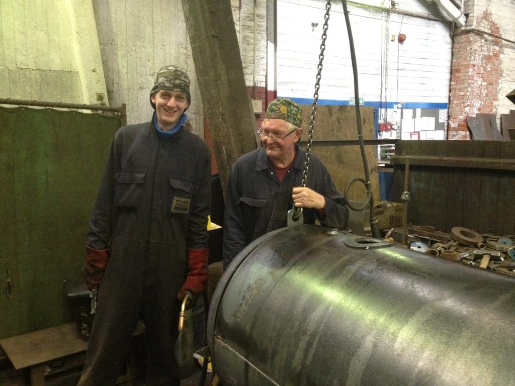 Keith Killet one of Abbotts more ‘senior’ coded welders – passes on some of the tricks if the trade to young Alex Jackson – once he has passed a series of tests and some X-rayed weld plates to EN287 he will start on some some simple air receivers
