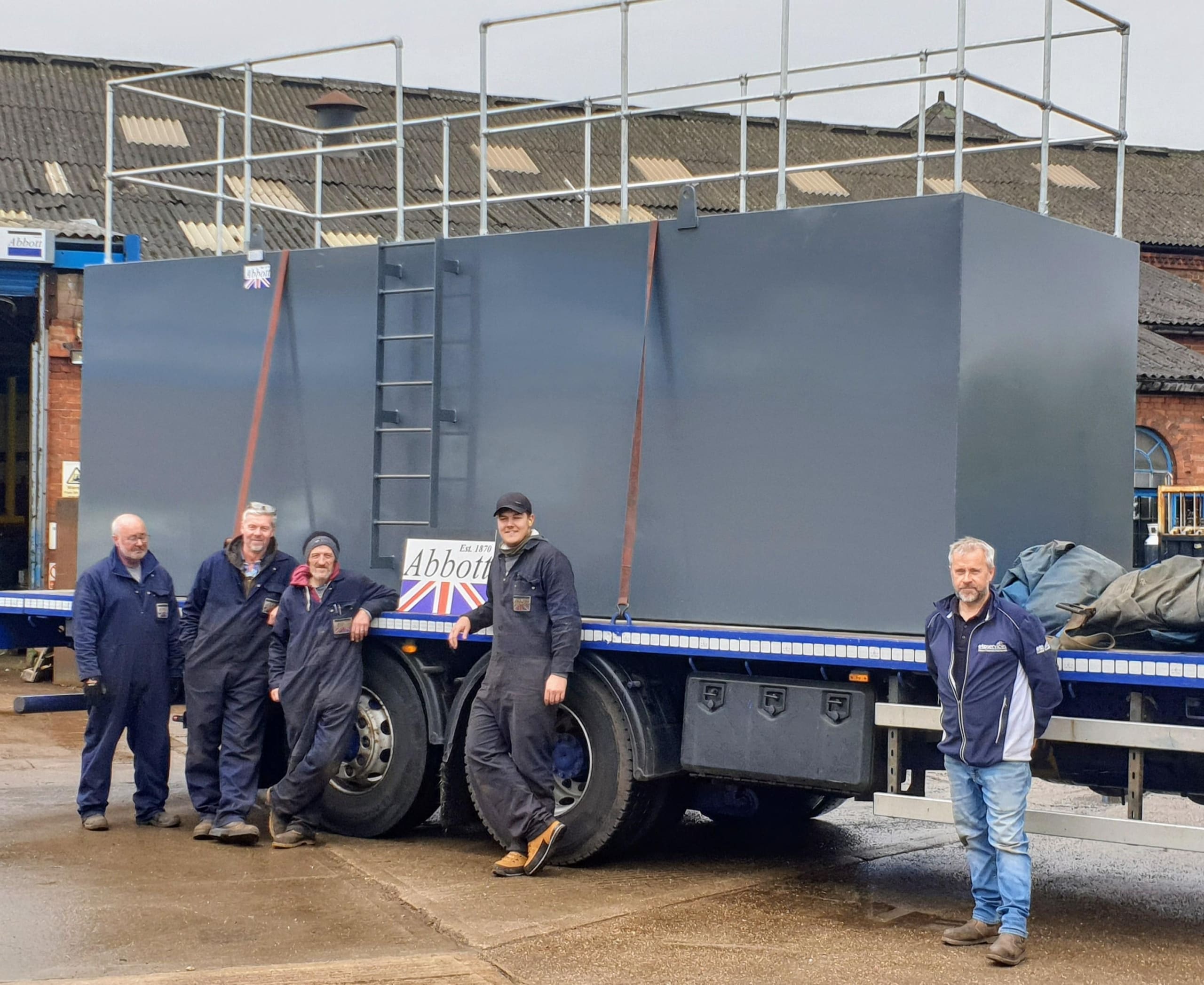 Below is the finished vessel all loaded up and ready to go. Proud Abbott staff who have spent many an hour carefully measuring, plasma cutting, welding, fitting and painting gather to say a final farewell! Graham was on site to enjoy the moment with us; before taking his fat trap off to get some work done!